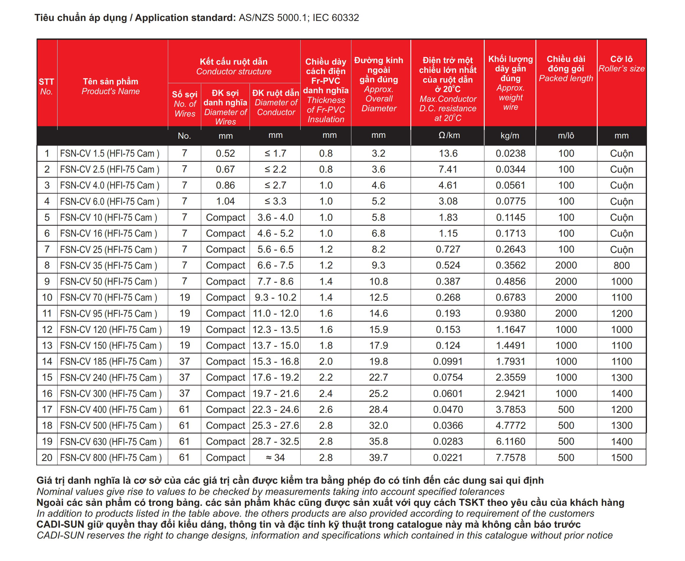 – Mặt cắt danh định: Từ 1.5 mm2 đến 1000 mm2