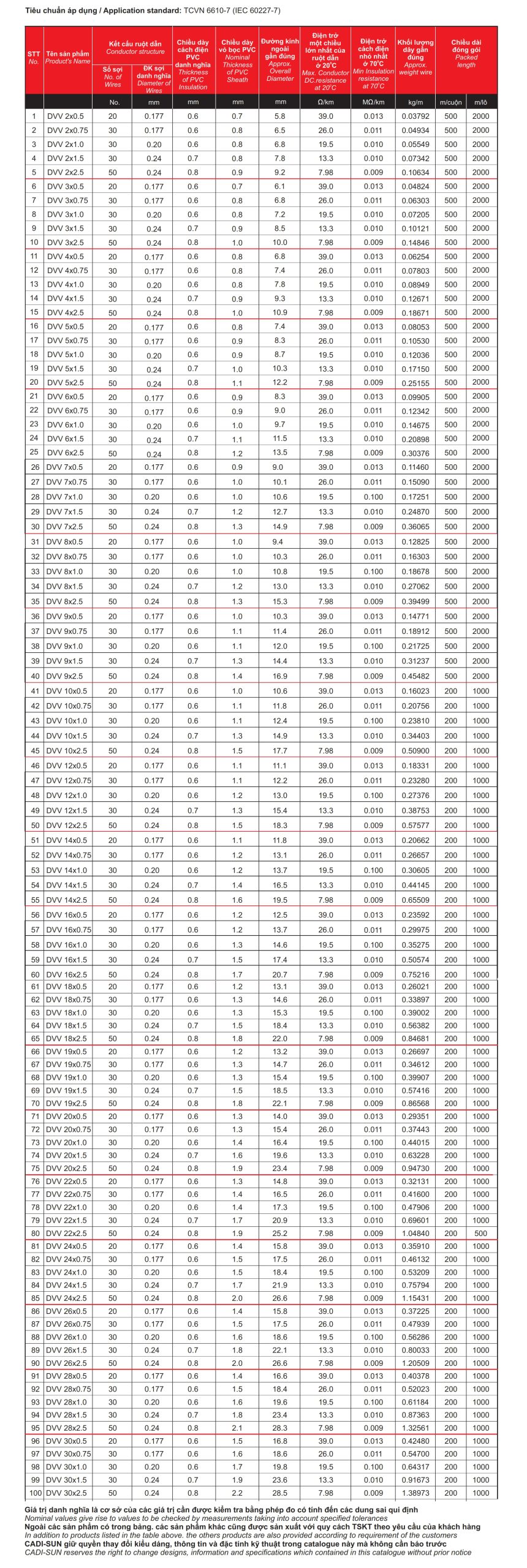 CÁP ĐIỀU KHIỂN KHÔNG LƯỚI – DVV – 300/500 V