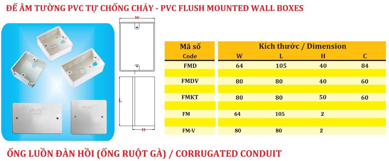 Đế âm HCN, vuông pvc chống cháy – HDV
