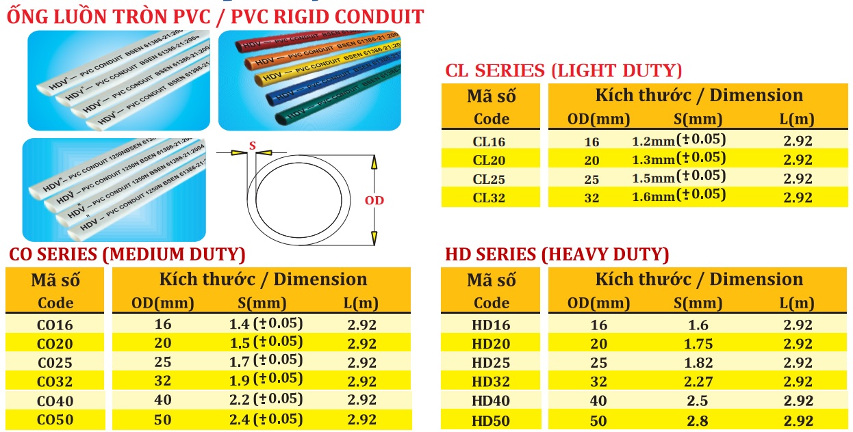 Tiêu chuẩn: BS EN 61386 – 21:2004 + A11:2010, ISO 9001:2015